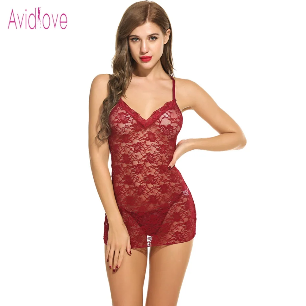 Cheap Offer of Avidlove Babydoll Lingerie Sexy Hot Erotic Dress Women See Through Floral Lace Sleepwear Female Hot